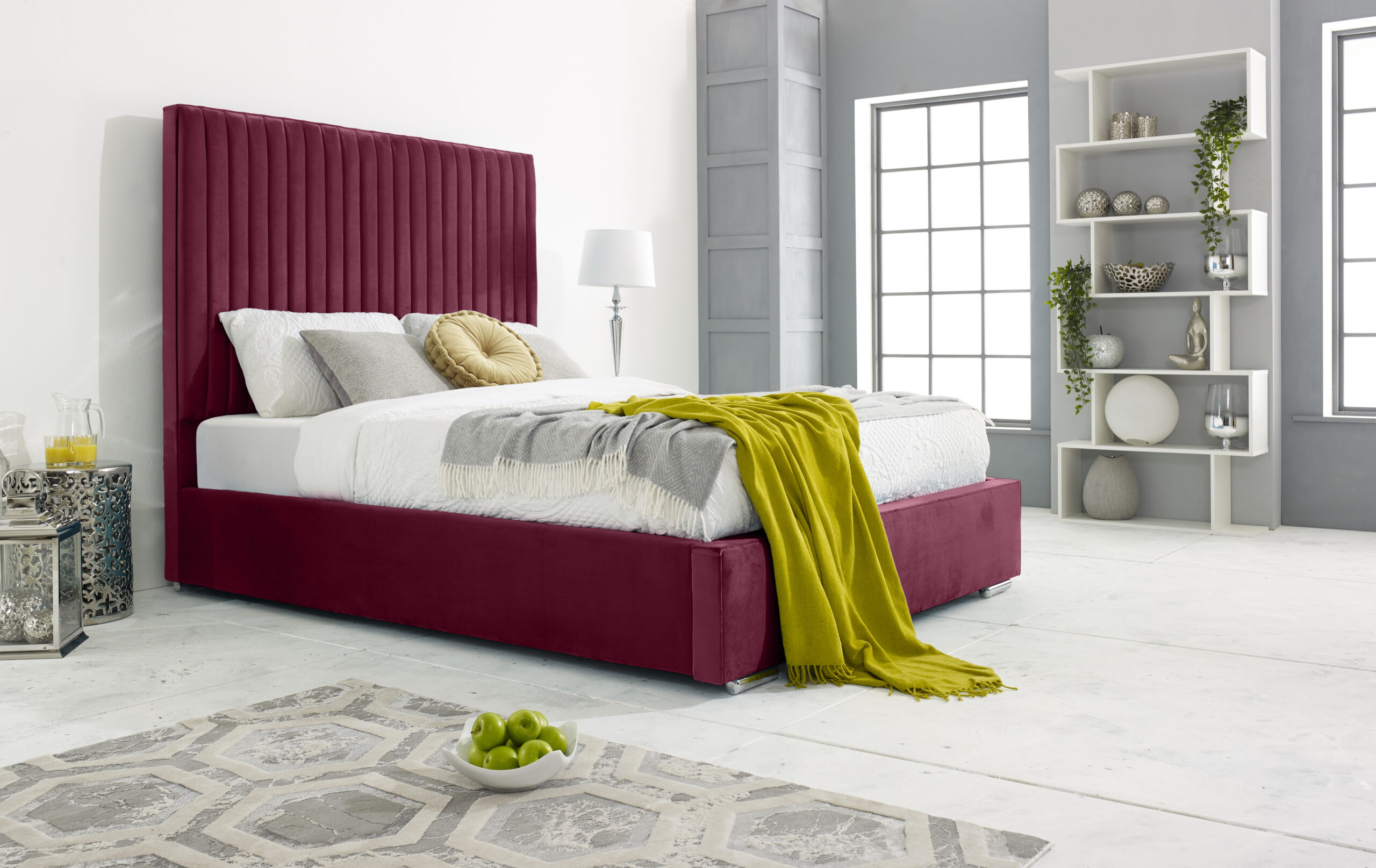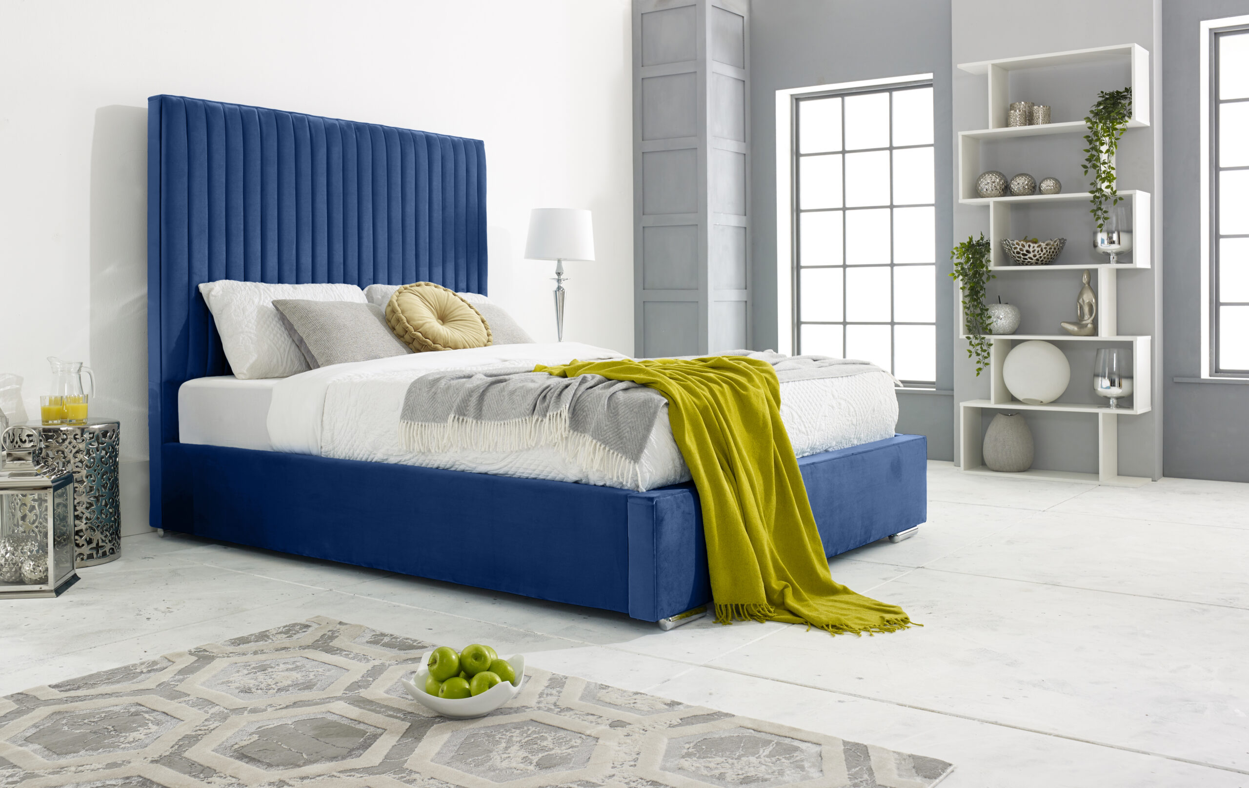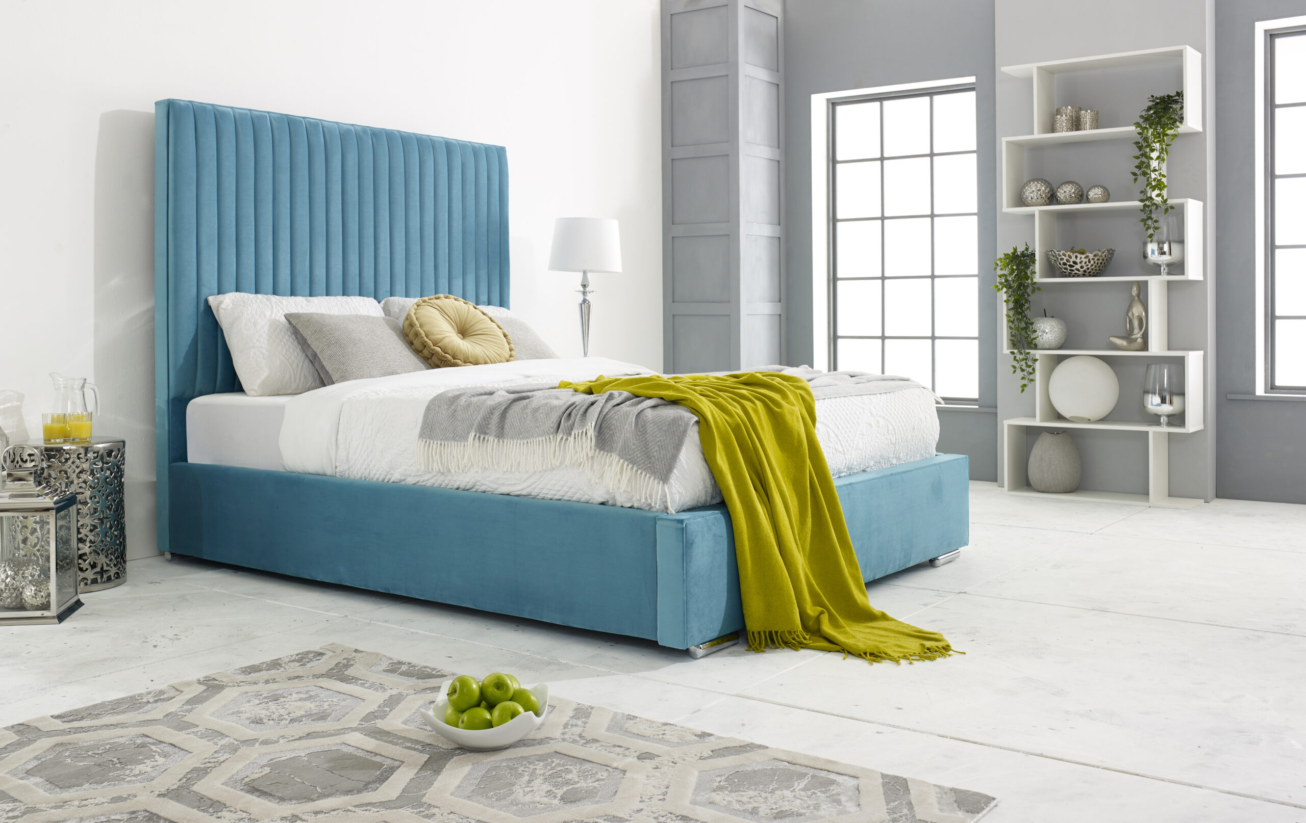 Our stylish and sleek Merki bed frame is perfect for any bedroom space. The stunning upholstered plush teal frame is crafted with the best of solid timber with exquisite velvet covering. Featuring a lined headboard that elegantly dominates your sleeping area, it provides the perfect lounging place to relax and enjoy a quiet morning or a late-night show. The siderails are perfectly padded to give the bed frame a comfy and cozy look. With its solid board base, chrome feet, and 4-inch solid thick frame, the Merki bed is a sturdy and durable bed frame that is built to last. You can choose from a variety colors available. Please note that the mattress and accessories are not included in the package.