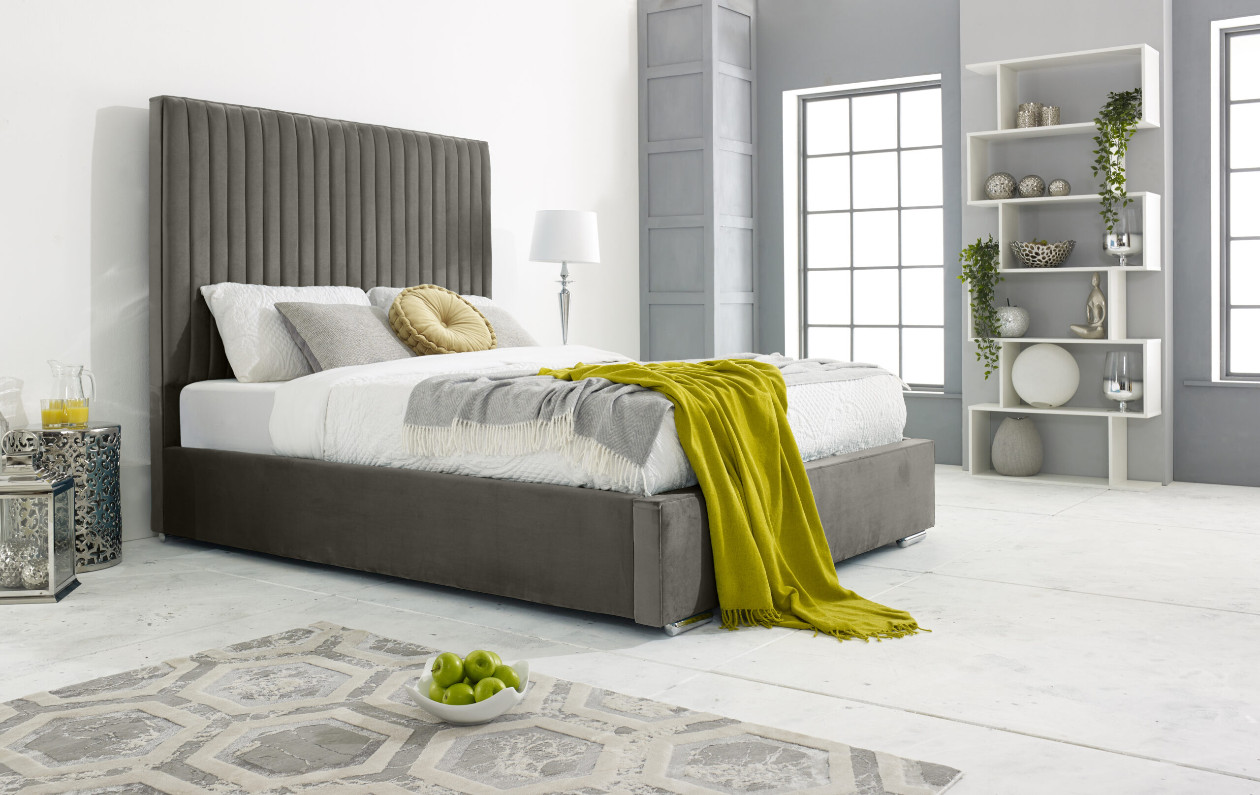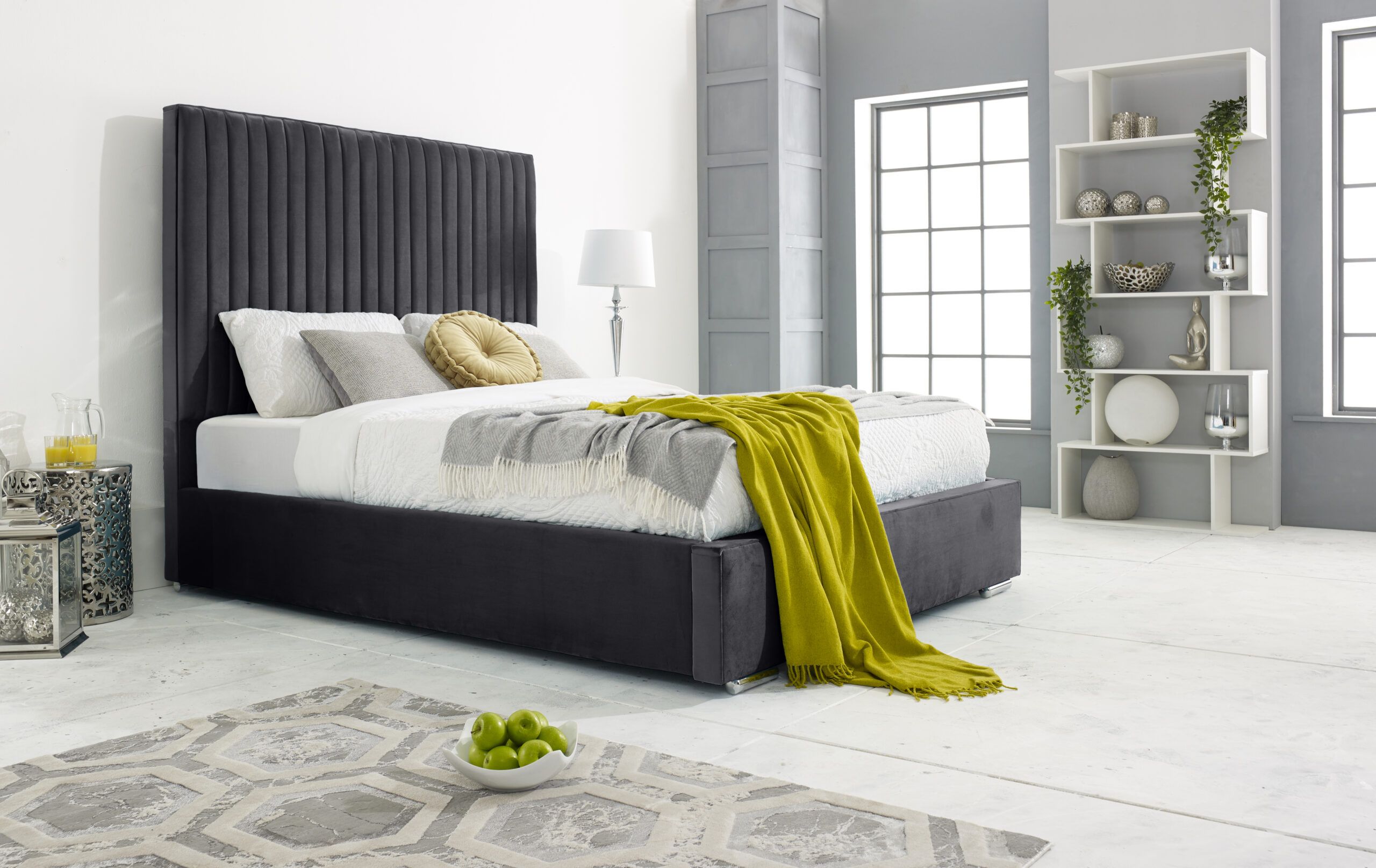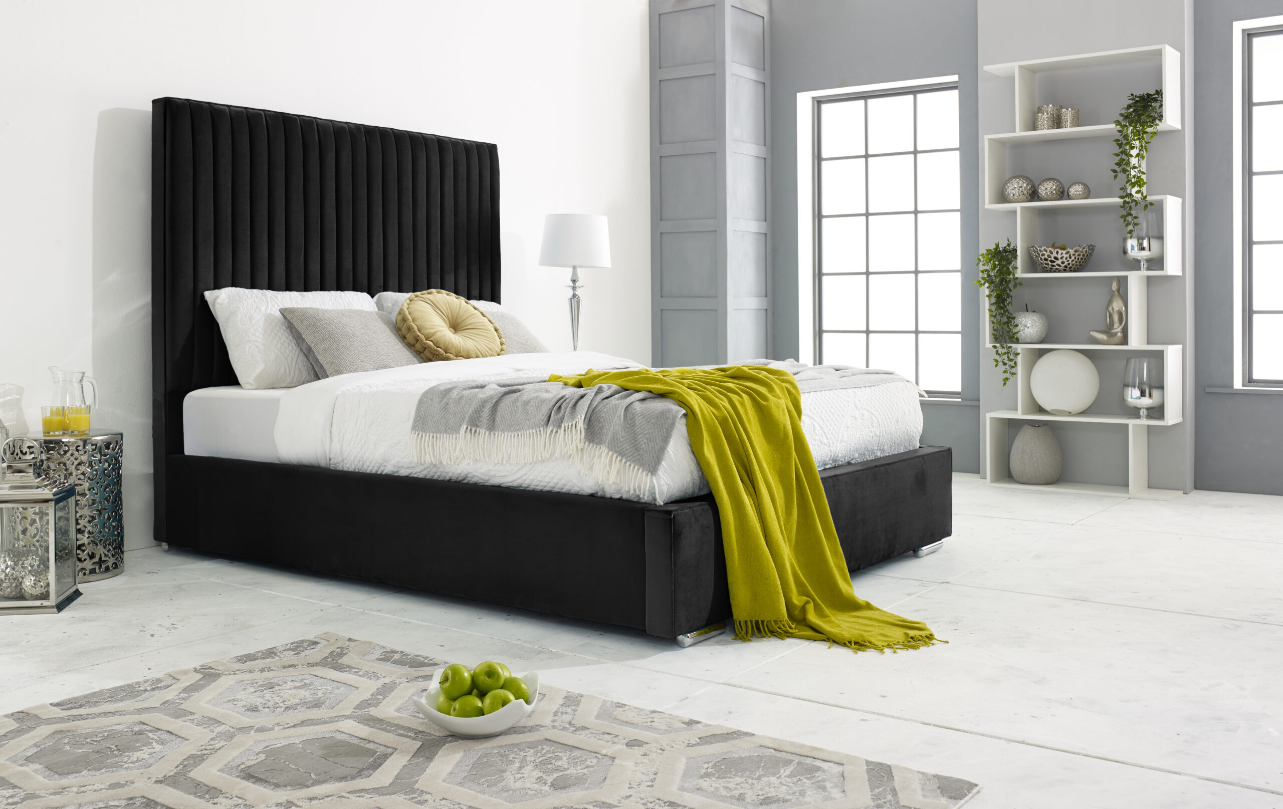 Our stylish and sleek Merki bed frame is perfect for any bedroom space. The stunning upholstered plush teal frame is crafted with the best of solid timber with exquisite velvet covering. Featuring a lined headboard that elegantly dominates your sleeping area, it provides the perfect lounging place to relax and enjoy a quiet morning or a late-night show. The siderails are perfectly padded to give the bed frame a comfy and cozy look. With its solid board base, chrome feet, and 4-inch solid thick frame, the Merki bed is a sturdy and durable bed frame that is built to last. You can choose from a variety colors available. Please note that the mattress and accessories are not included in the package.