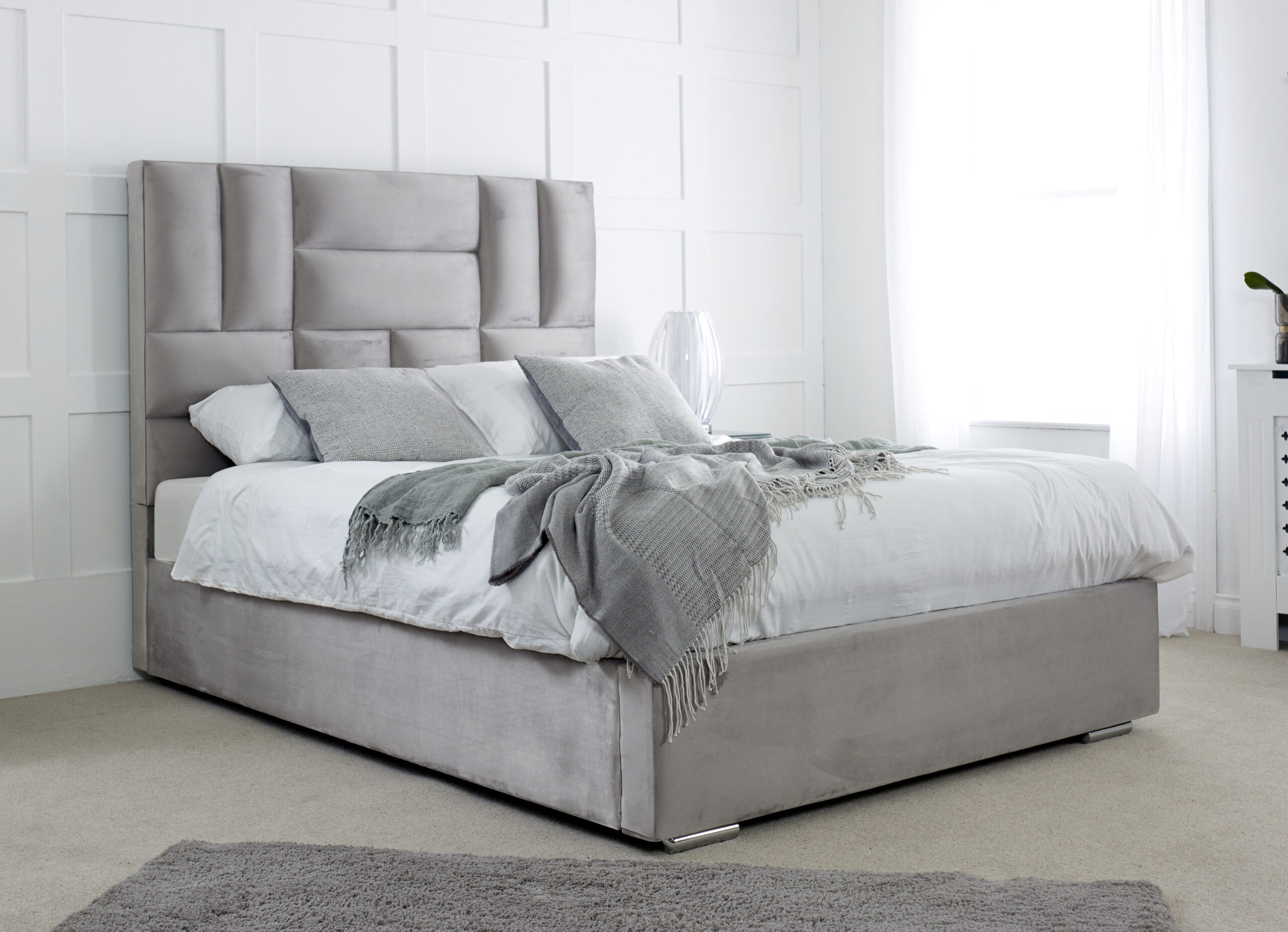 Intricately crafted from rich, soft velvet fabric, our Ofsted combines stylish brick design with semi-rustic detailing to produce a sophisticated bed frame that will fit into any space. From its striking regal horizontal and vertical lines stuffing to the customised upholstery design, the Ofsted is undoubtedly a masterpiece for any bedroom. Its plush velvet fabric makes you want to burrow deep into the bed and enjoy a refreshing night’s rest. Ofsted comes with chrome feet and a solid board base for strength and durability. The 4-inch solid thick frame is designed to last for years while ensuring you have a wonderful night’s rest. You can choose Ofsted in a variety of colours.